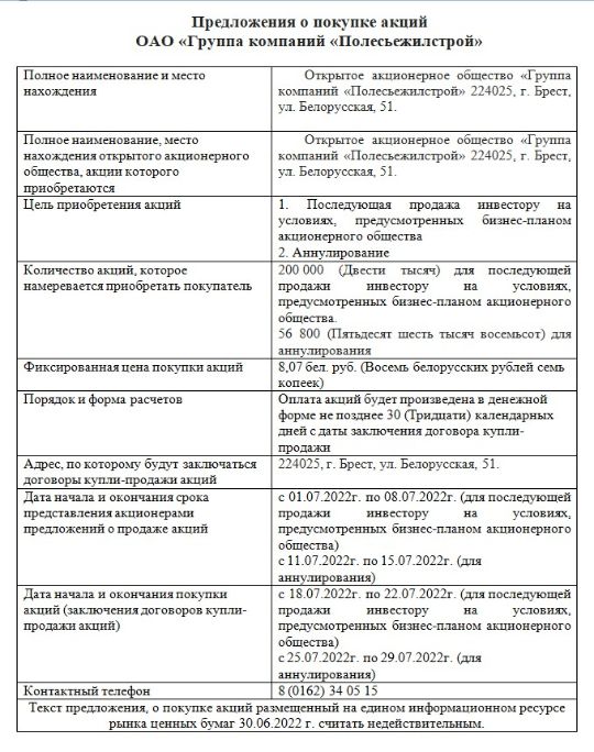 Предложения о покупке акций