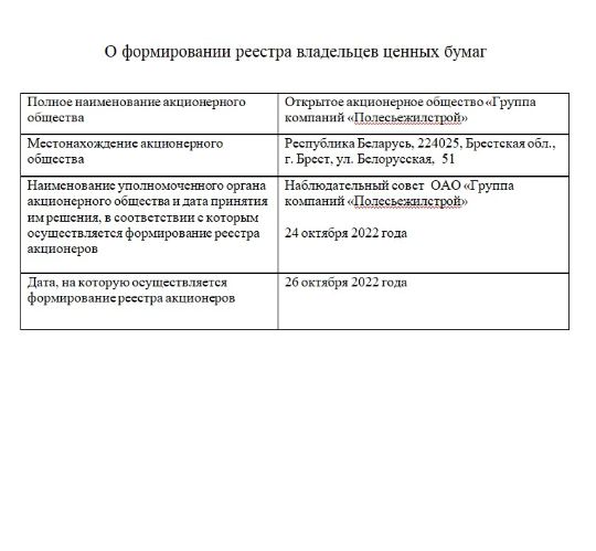 Формирование реестра владельцев ценных бумаг